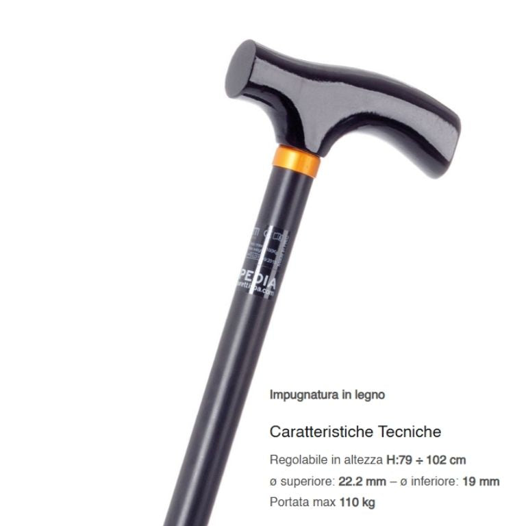 Bastone da passeggio leggero e resistente, realizzato in alluminio anodizzato, ideale per chi necessita di un ausilio pratico per la deambulazione quotidiana. È dotato di altezza regolabile, puntale in gomma antiscivolo e disponibile in tre versioni di impugnatura per adattarsi al comfort e alle preferenze dell’utente.