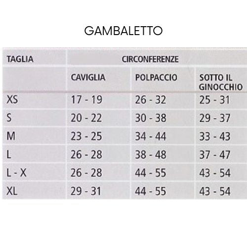 Compressione graduata terapeutica specifica (circa 18 mmHg alla caviglia)