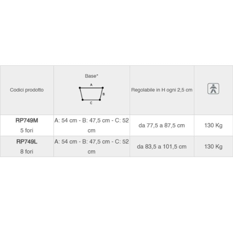 Impugnature: Anatomiche, regolabili in altezza