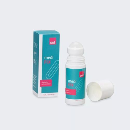 Medi Fix è una lozione adesiva in formato roll-on da 50 ml, ideale per garantire una tenuta sicura e duratura di calze e bracciali compressivi, anche in assenza del bordo in silicone.