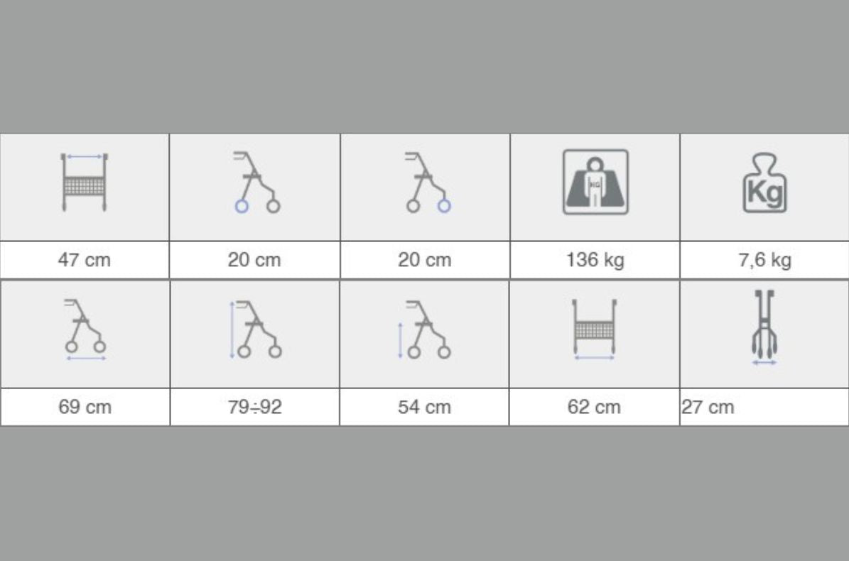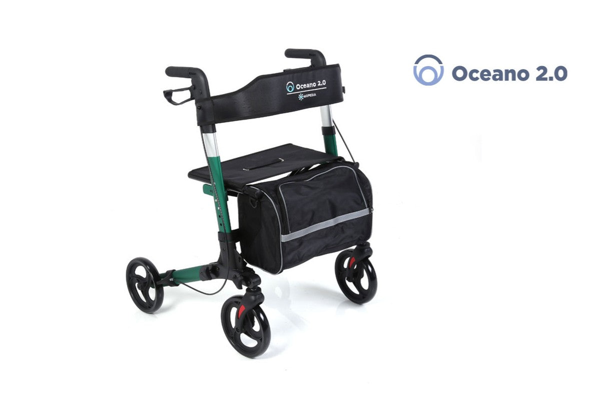 Il design completamente pieghevole permette di trasportarlo e riporlo facilmente, occupando pochissimo spazio. Oltre alla seduta e allo schienale, il Rollator OCEANO 2.0 è fornito di borsa portaoggetti e portabastone/stampella, per una maggiore praticità.