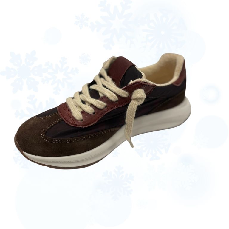 Il design moderno e sportivo, nei toni bordeaux con rifiniture marroni, rende questa calzatura perfetta per unire stile e funzionalità ortopedica.