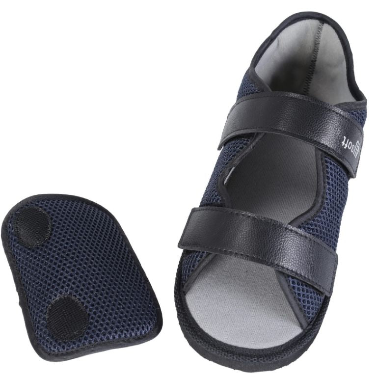 La scarpa ortopedica post-operatoria 4USoft – SC100 è progettata per offrire comfort, protezione e stabilità al piede durante la fase post-operatoria o post-traumatica. Il design aperto, regolabile e il fondo antiscivolo garantiscono una calzata sicura e adattabile, anche in presenza di bendaggi o ingessature.