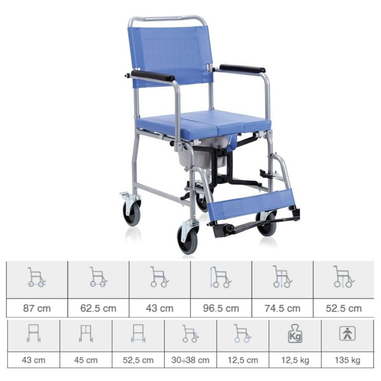 Dotata di schienale fisso estraibile, braccioli ribaltabili e seduta anatomica con foro centrale, offre massimo comfort durante l’uso. Il secchio estraibile con coperchio è incluso e facilmente accessibile.
