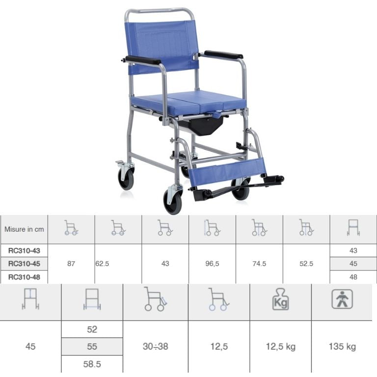 Adatta per l’utilizzo in casa, strutture sanitarie e RSA, è dotata di una struttura in acciaio verniciato resistente, seduta ergonomica con foro centrale, e secchio igienico estraibile.
