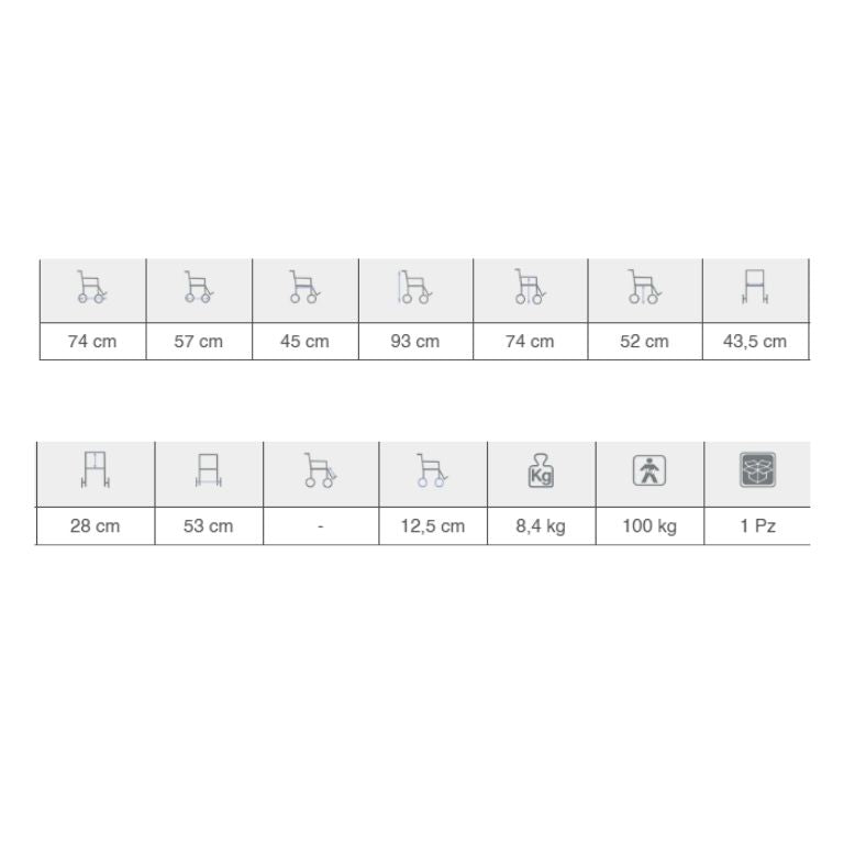 Le 4 ruote piroettanti con freno garantiscono stabilità e facilità di movimento anche in spazi ristretti, mentre braccioli ribaltabili e poggiapiedi estraibili facilitano il trasferimento laterale e l’accessibilità dell’utente.
