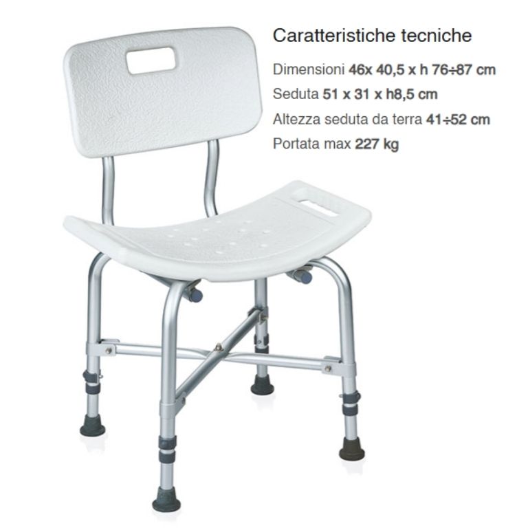 Il sedile per doccia con schienale è progettato per garantire massimo comfort, sicurezza e resistenza anche per utenti con corporatura robusta o mobilità ridotta.