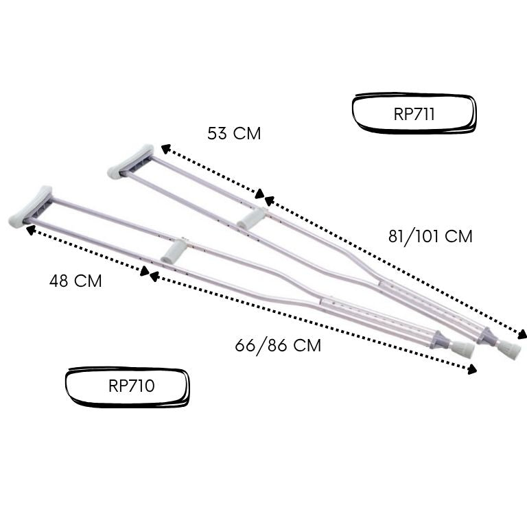 RP710 (Taglia M): da 114 a 134 cm (lunghezza tot stampella)
